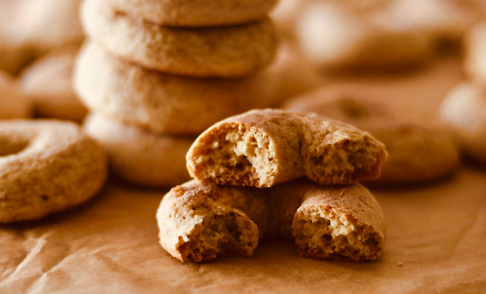 Pré-aqueça o forno a 180ºc e forre com papel vegetal um tabuleiro retangular. Numa tigela misture todos os ingredientes até obetr uma massa moldável com as mãos. Polvilhe uma bancada com um pouco de farinha tire pequenas bolinhas de massa, molde um rolinho e depois forme uma argola e coloque no tabuleiro. Repita o processo até preencher o tabuleiro e leve ao forno durante cerca de 18 minutos. Retire do forno e deixe-as arrefecer por completo antes de guardá-las num recipiente hermético.